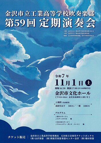 トップページ > イベント情報 > 金沢市立工業高等学校吹奏楽部 第59回定期演奏会