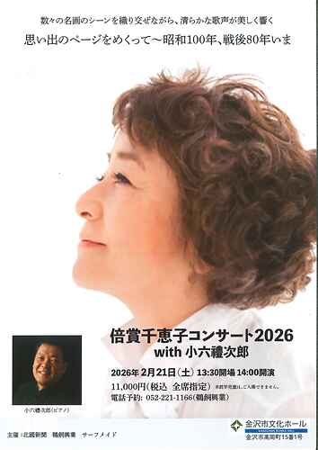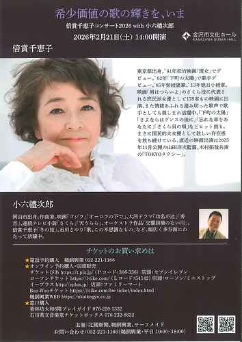トップページ > イベント情報 > 倍賞千恵子コンサート2026 with 小六禮次郎