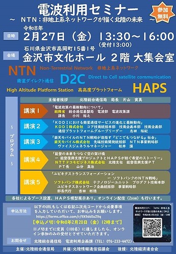 トップページ > イベント情報 > 電波利用セミナー ~NTN・非地上系ネットワークが描く北陸の未来~